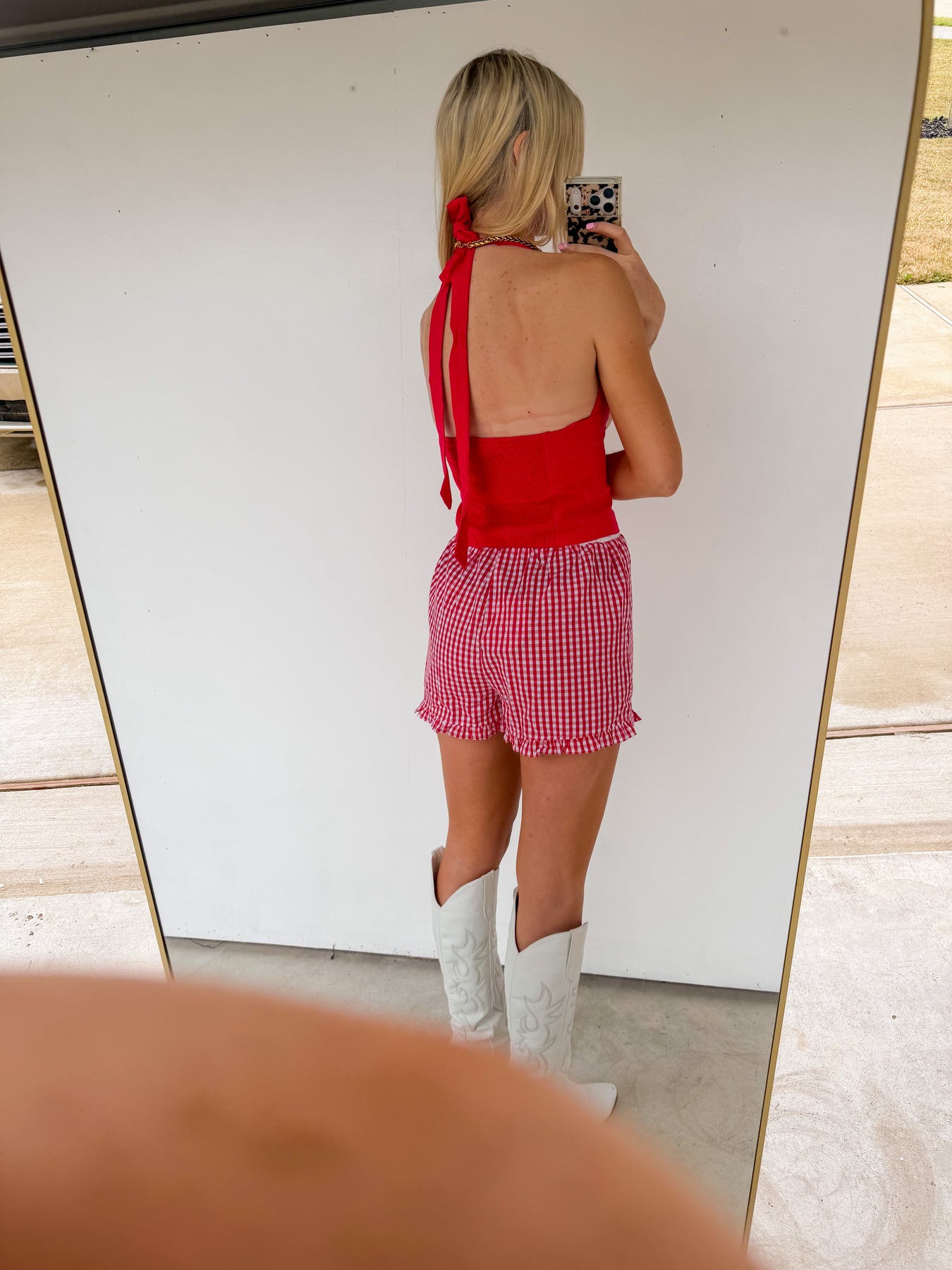 Button Down Halter Top in Red