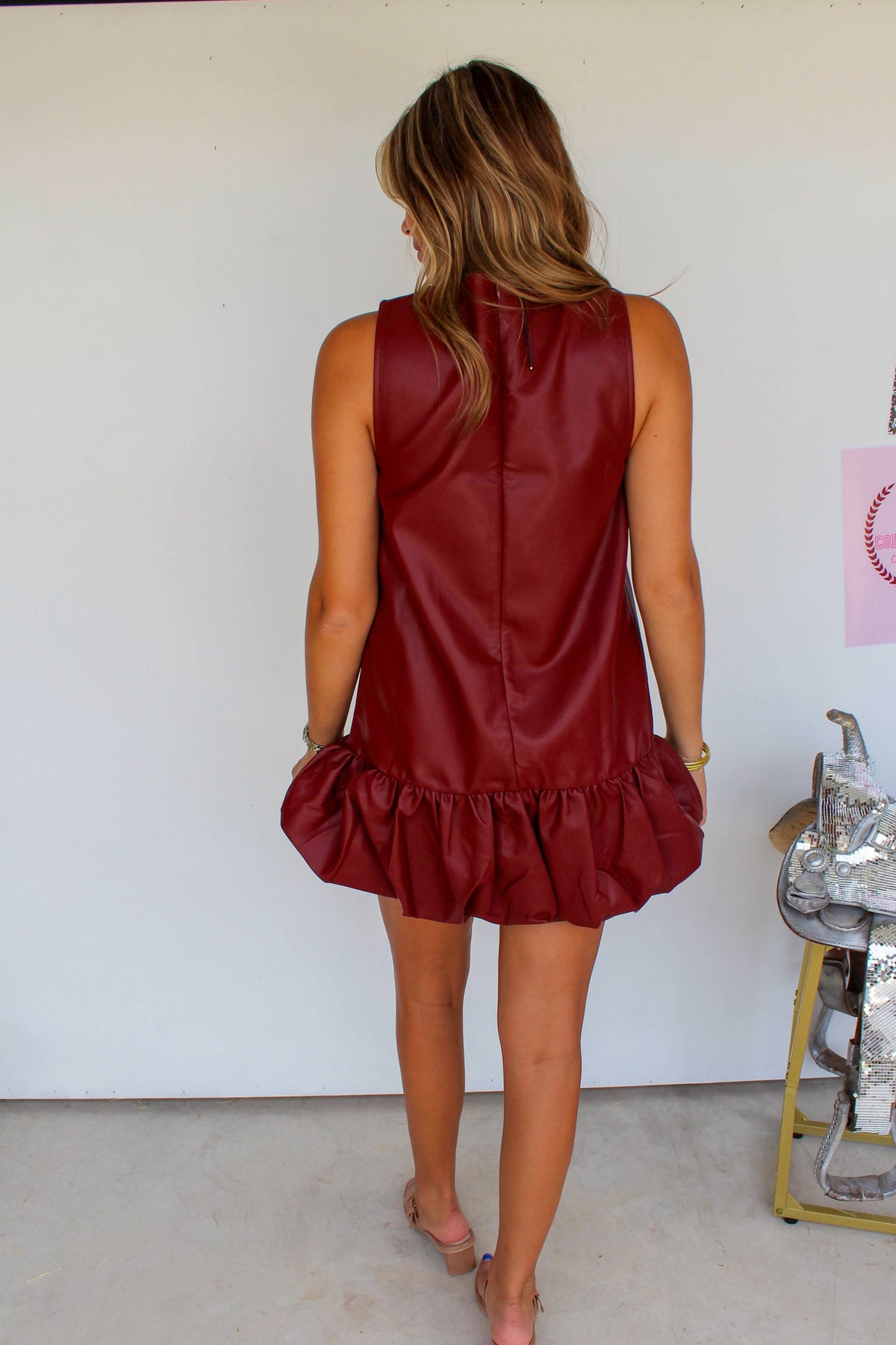 Maroon Leather Bubble Hem Dress