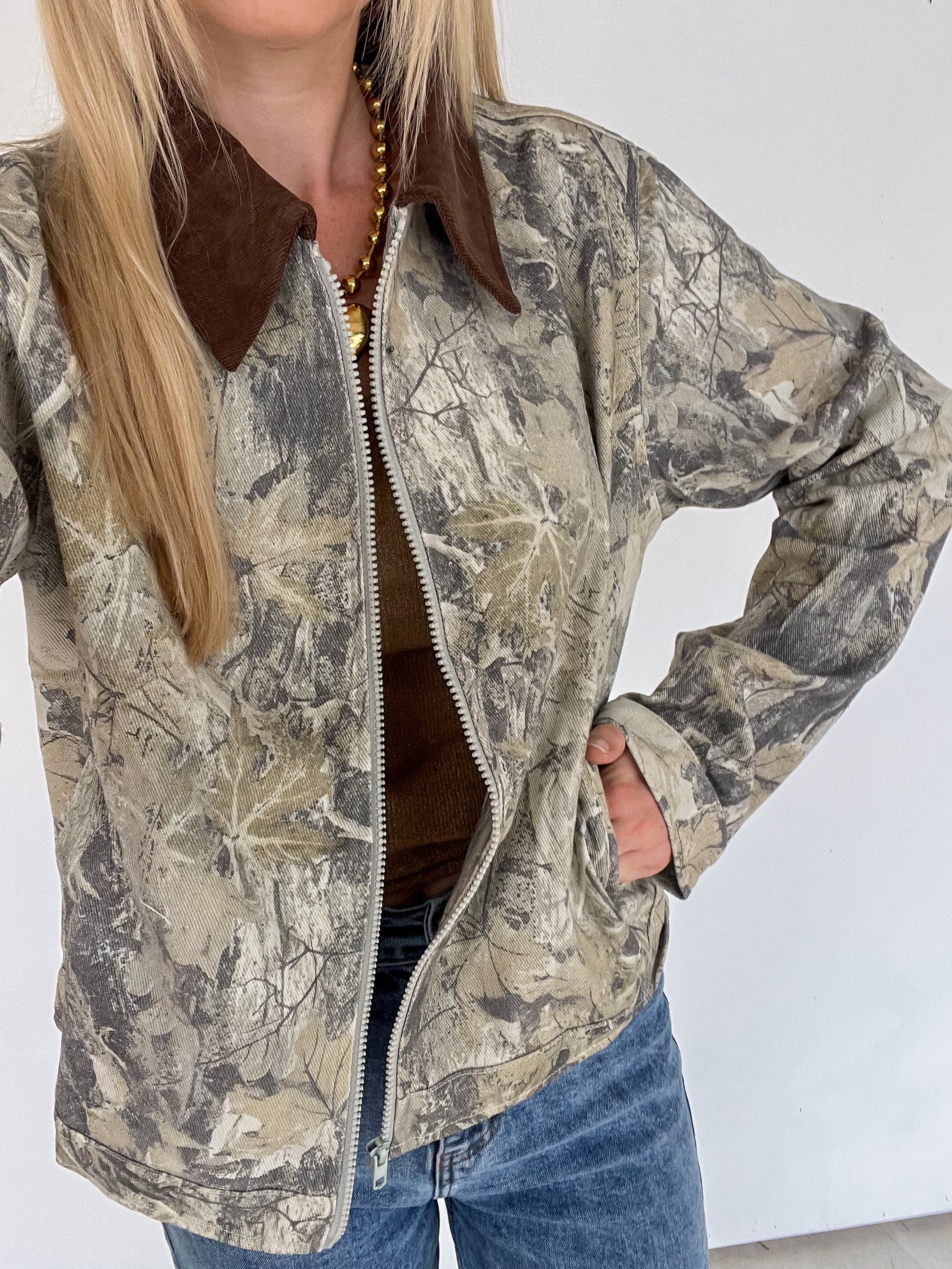 - zip up camo jacket