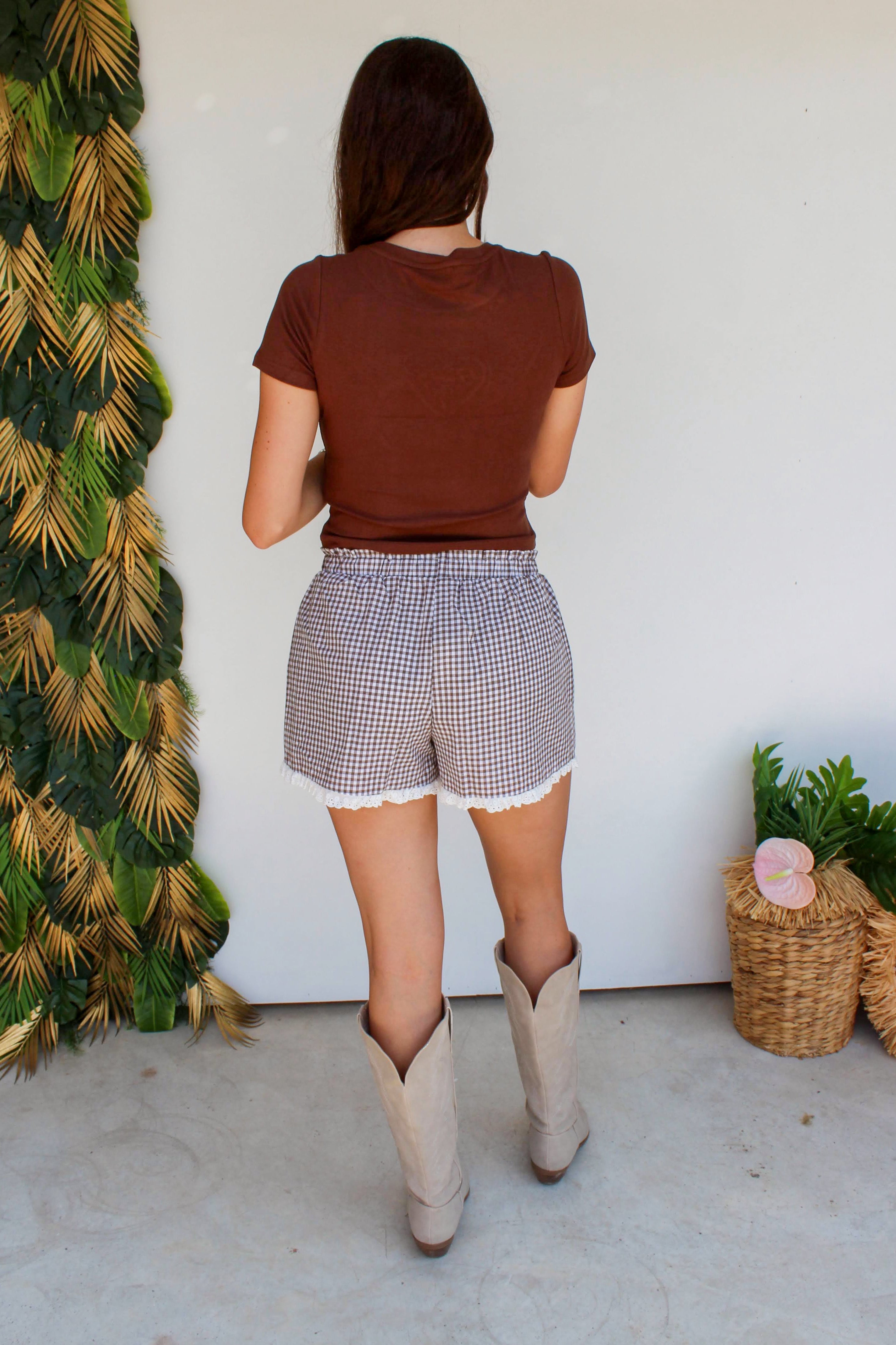 Gingham Ruffle Boxers in Mocha