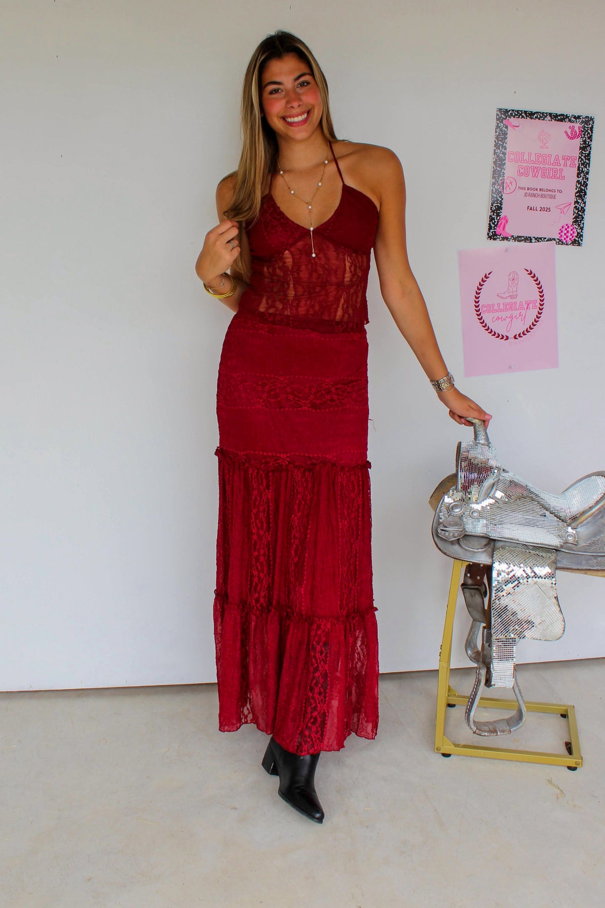 Maroon Lace Set
