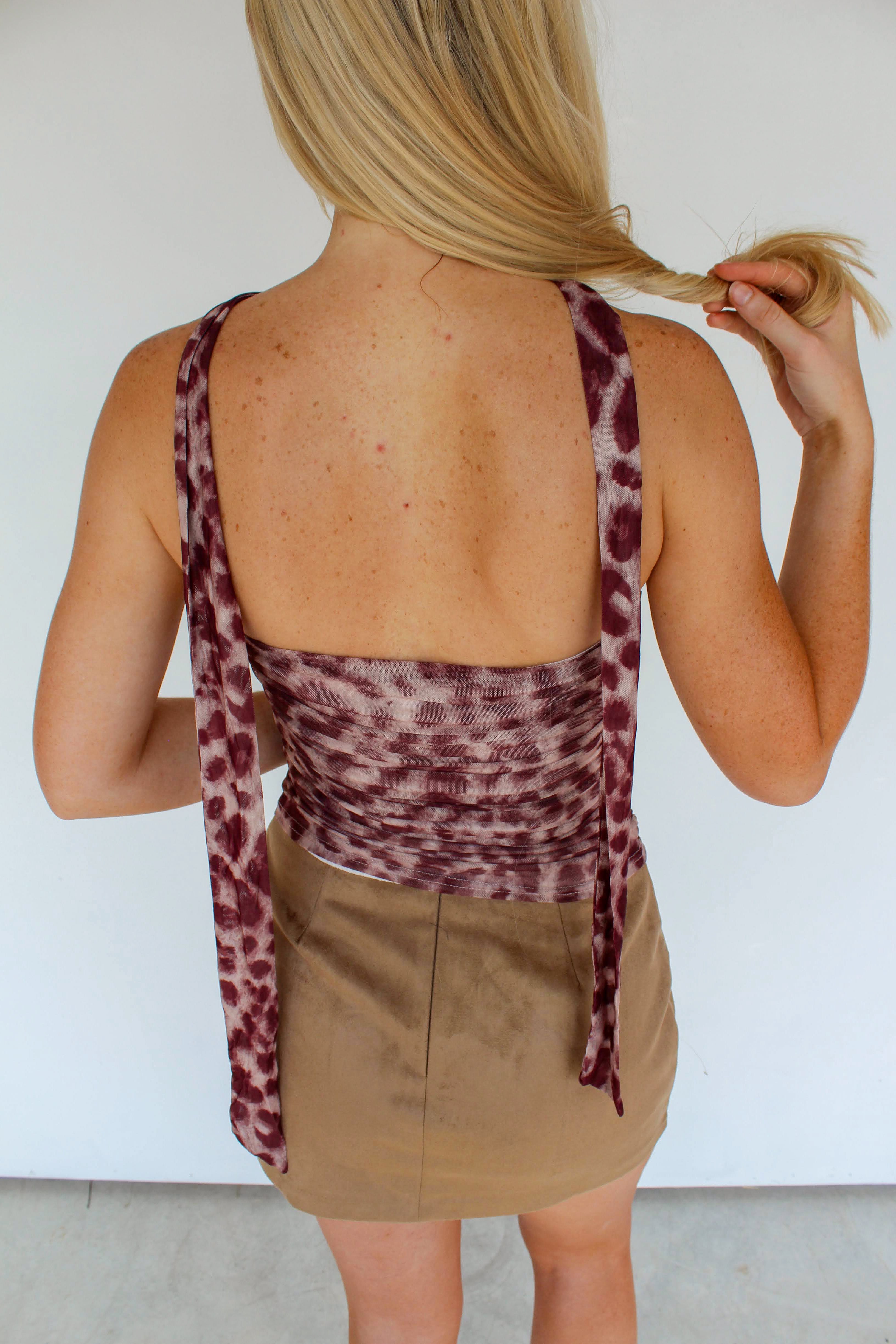 - leopard print strapless tube top with unattached scarf